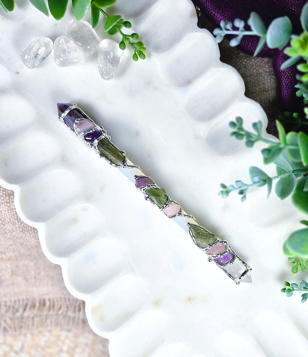 Experience tranquility, love, and grounding energy with our exquisite Larimar, Pink Natrolite, and Garnet ring crafted in sterling silver. At Remnants Of Magic, we embrace the beauty and power of these stones, combining the calming essence of Larimar, the heart-centered vibrations of Pink Natrolite, and the revitalizing strength of Garnet. This unique piece is more than just jewelry; it's a harmonizing tool designed to elevate your spiritual practice. Meticulously set in sterling silver to enhance the stones' natural energies, this ring embodies our dedication to providing high-quality metaphysical supplies. Embrace the magic and let this ring be your guiding light.