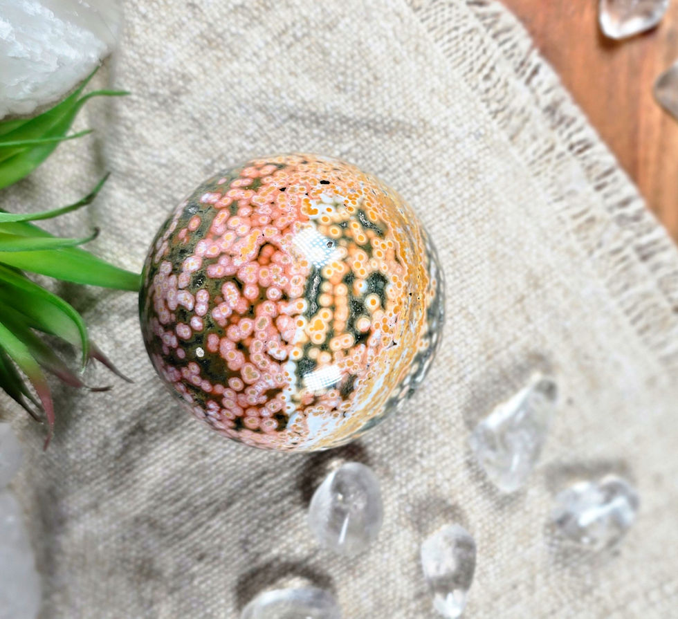Ocean Jasper is especially cherished for helping to lift the spirit, nurture the heart, and remind us to embrace the present moment with gratitude and ease. It is a perfect companion for those seeking emotional healing, mindful living, and a deeper connection to calm, joyful energy.